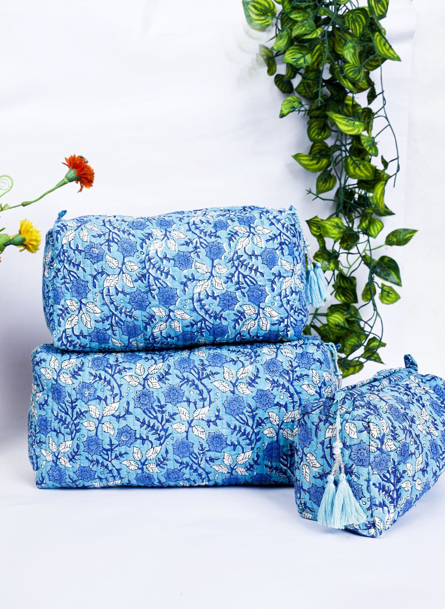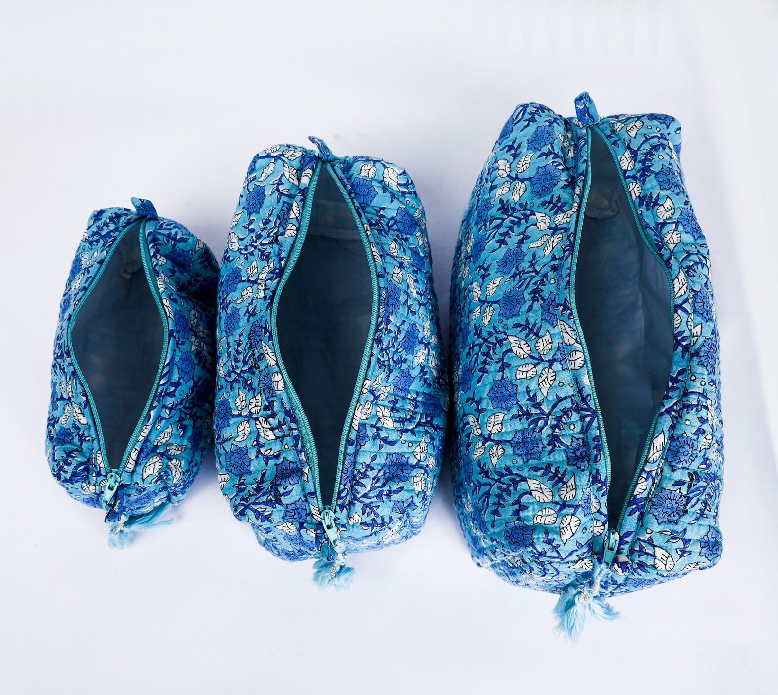 Block Print Cosmetic Bag Trio | Quilted Cotton Travel Makeup Organizer | Boho Gift Idea