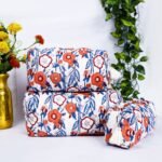 Block Print Cotton Toiletry Bags Set Handmade Makeup Pouches Boho Gift for Traveler