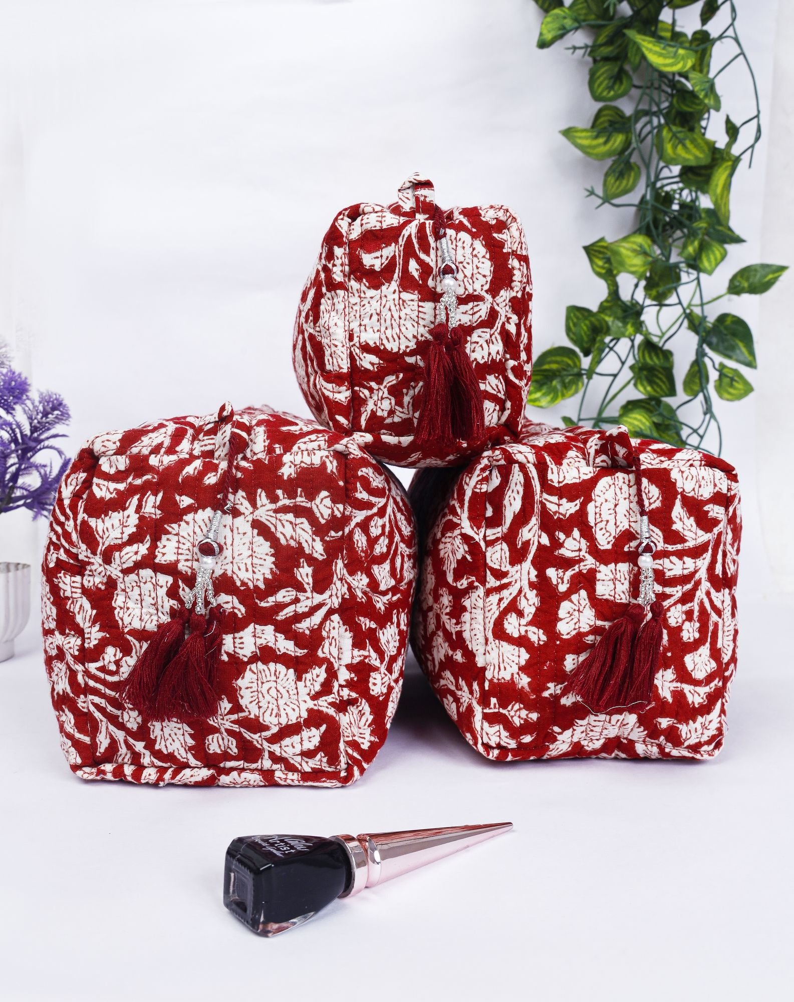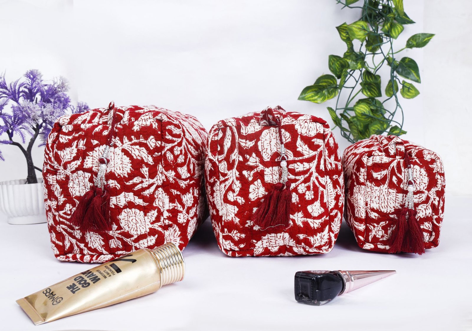 Boho Quilted Cotton Cosmetic Bags Set Handmade Travel Toiletry Pouches Gift for Her