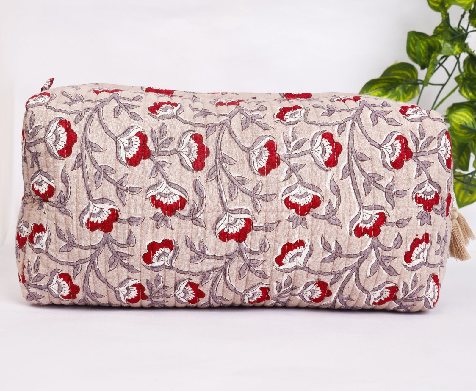 Eco-Friendly Makeup Bags Cotton Quilted Toiletry Set Bohemian Block Print Cosmetic Case