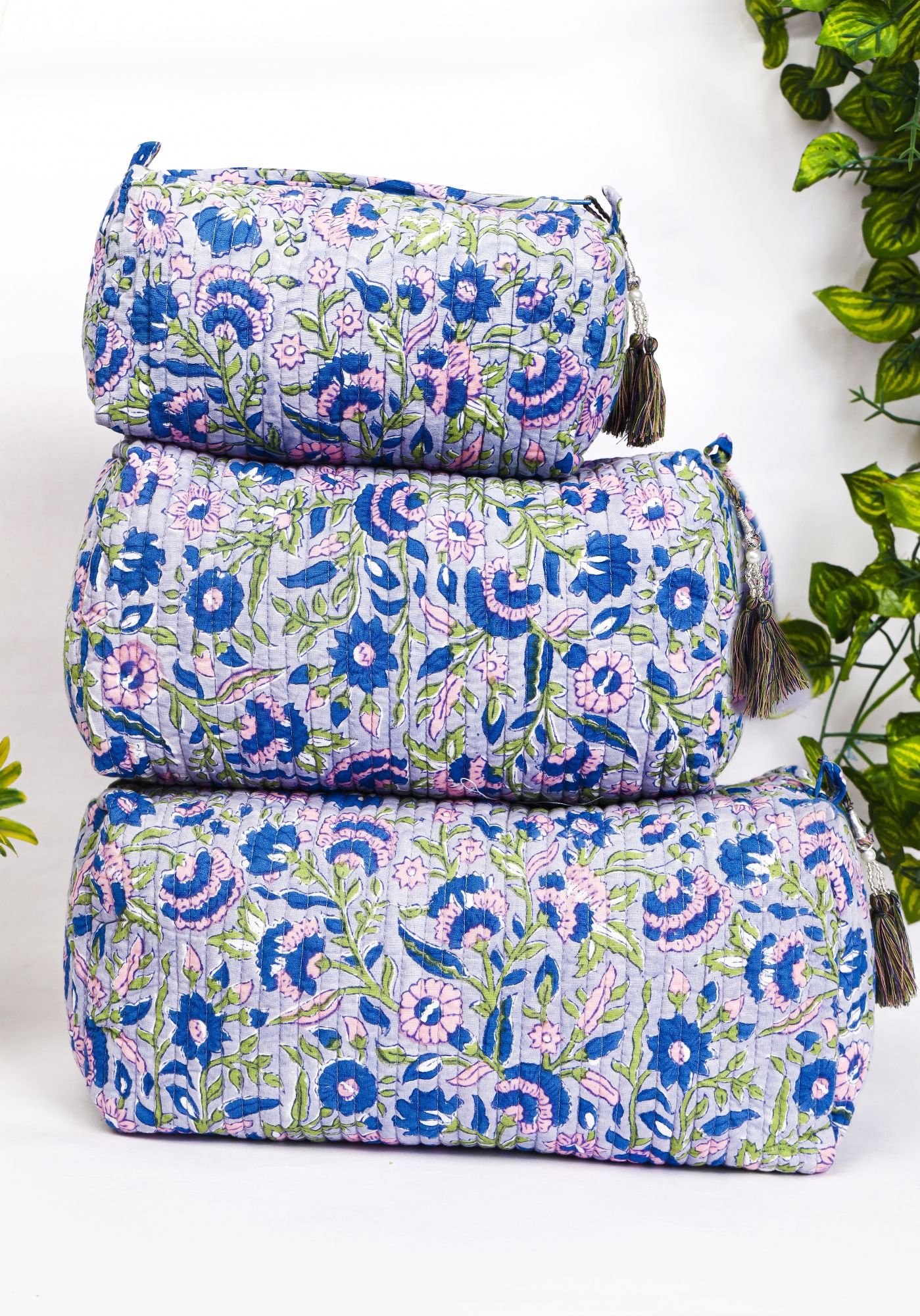 Indian Cotton Quilted Bag Set Travel Toiletry Organizers for Women Boho Chic Makeup Bags