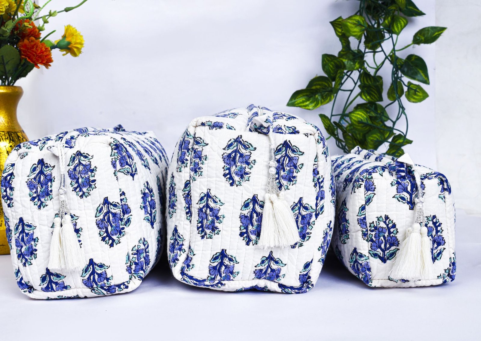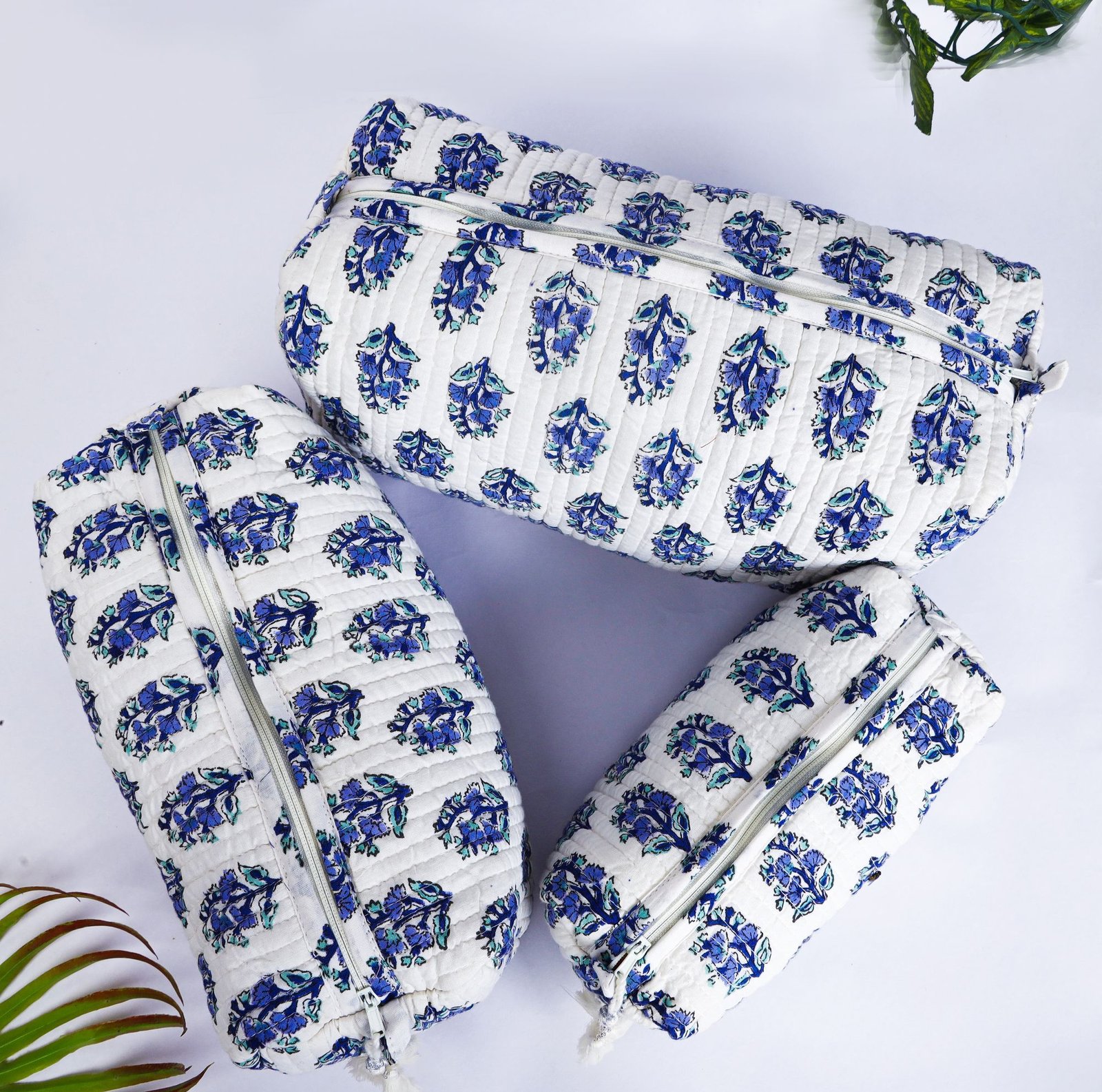 Travel Toiletry Bags for Women Set of 3 Handmade Quilted Cotton Makeup Pouches